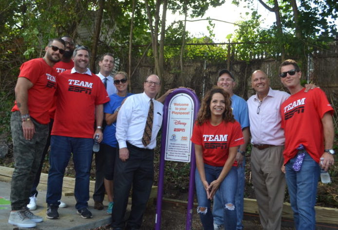 Participants in the Sept. 14 community event included Samuel Field Y employees, Disney VoluntEARS, ESPN Corporate Citizenship, KaBOOM! organizers and residents.