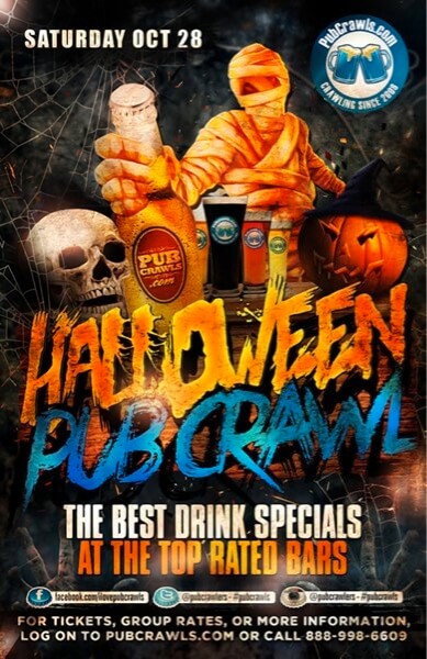 When the annual Halloween Pub Crawl gets underway, you and your friends can join the fun, along with other costumed and masked partygoers, and enjoy a variety of cocktails served up Halloween-style, at the many venues that are part of the crawl. It’s a soiree that you won’t want to miss, according to organizers “of the world’s biggest pub crawl, PubCr