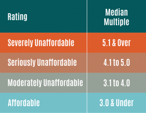 The higher the ratio is — 3 and lower is considered affordable — the longer it will take a family to pay off their home.