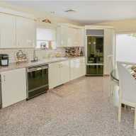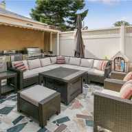 On the second floor, you’ll find four spacious bedrooms and one full bathroom, all complete with marble flooring. When you head back downstairs and step out into the backyard, you’ll find a fenced-in yard with a full outdoor kitchen, patio area and a Jacuzzi.