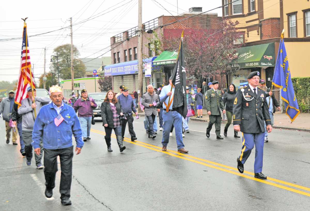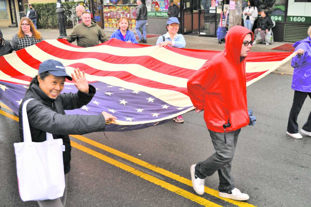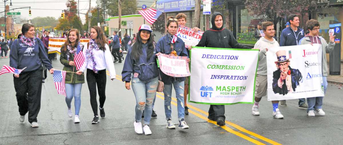 Overcast skies couldn’t dampen the patriotism felt by participants and spectators alike in the annual march, which drew a litany of veterans posts, community and youth organizations, marching bands, elected officials and others walking west on Metropolitan Avenue to Christ the King Regional High School.