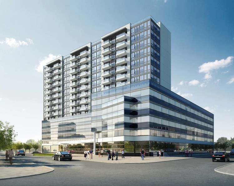 An enclosed parking garage containing 186 parking spaces will also be built. It will stand at 209 feet tall.
