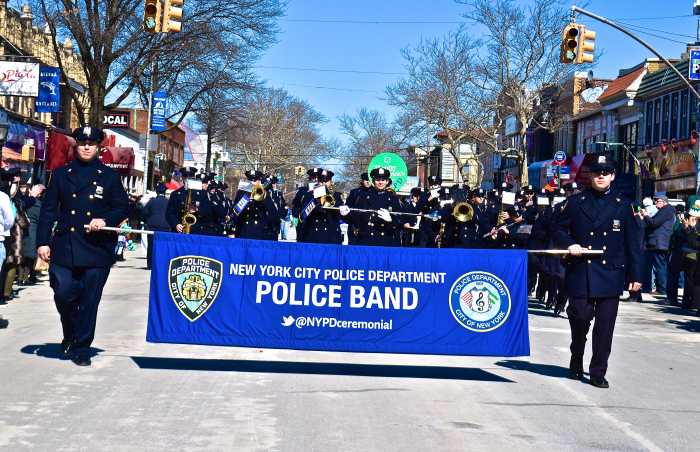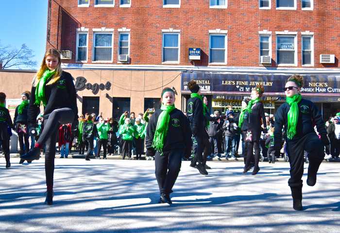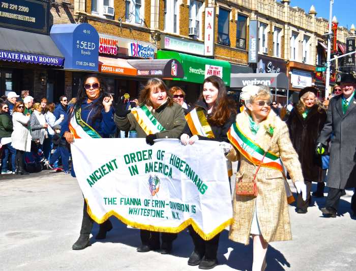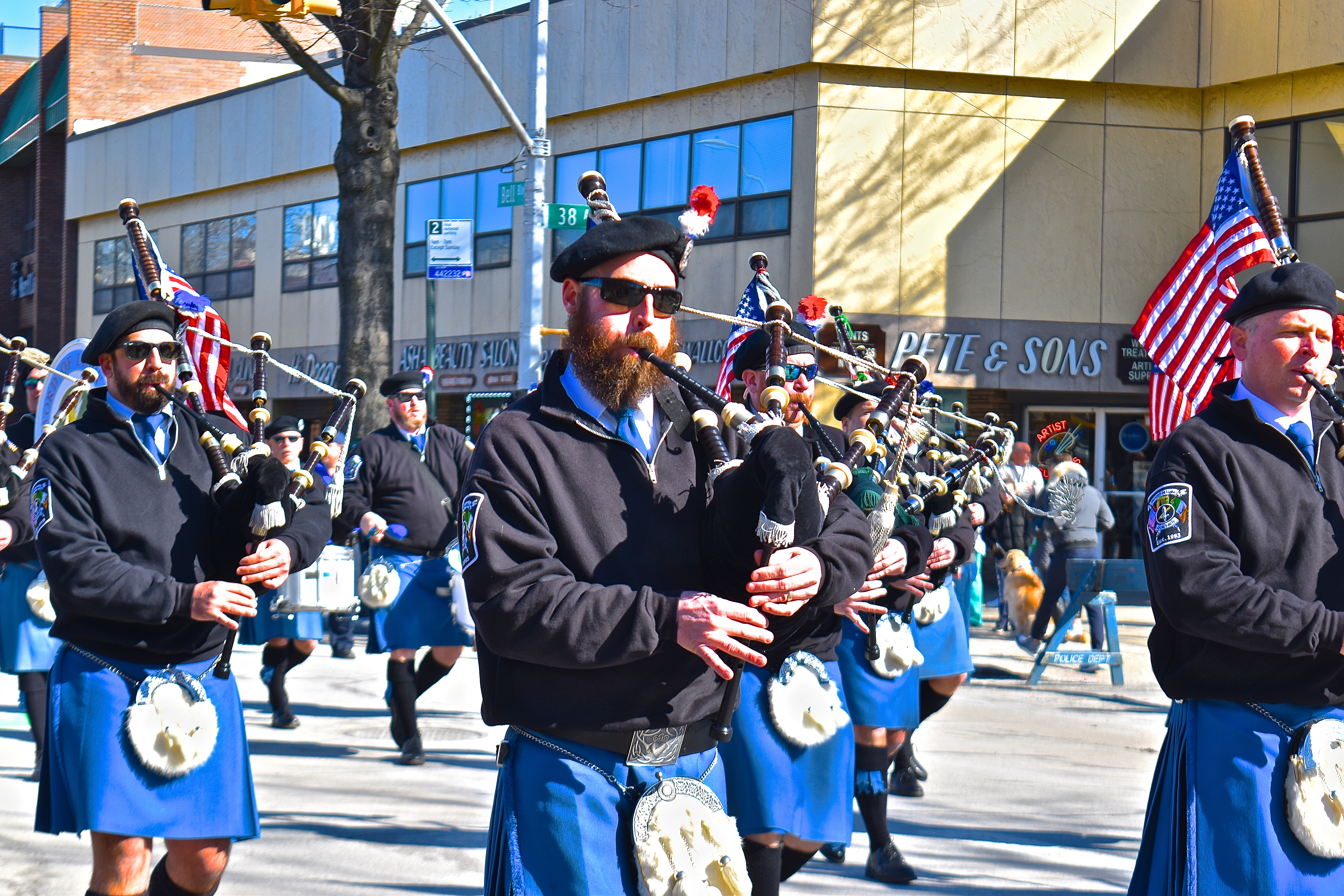 Upwards of 20 community groups participated in the march, including local schools such as Holy Cross High School, Our Lady of the Blessed Sacrament Catholic Academy and Sacred Heart Catholic Academy of Bayside. Various Irish-American organizations, including the Ancient Order of Hibernians (founders of the Manhattan St. Patrick’s Day Parade) and the NYPD Emerald Society, walked the route along with the NYPD Marching Band and pipe and drum corps from Iona College, Inis Fada, Breezy Point Catholic Club, Archbishop Molloy High School, Local Union No. 3 IBEW, Holy Cross High School and the MTA Police Department.
