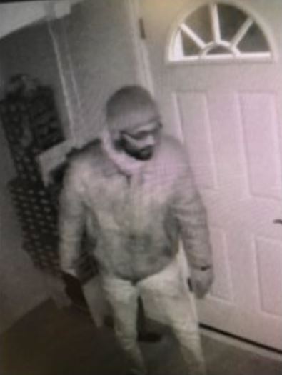 The suspect, who is pictured on surveillance footage riding up to the location on a bicycle, then flees to parts unknown.