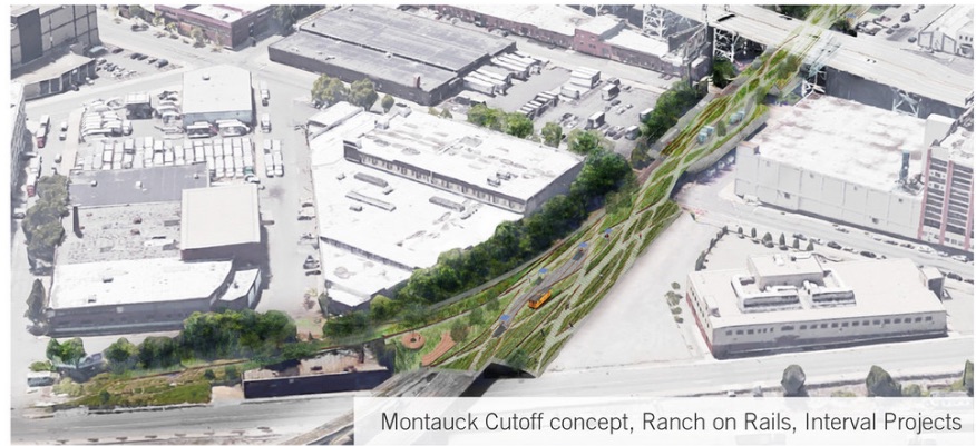 The resulting public park and walkway would circle 47th Avenue, go down the shoreline, and loop back around via the Montauk Cutoff and a new pedestrian bridge.