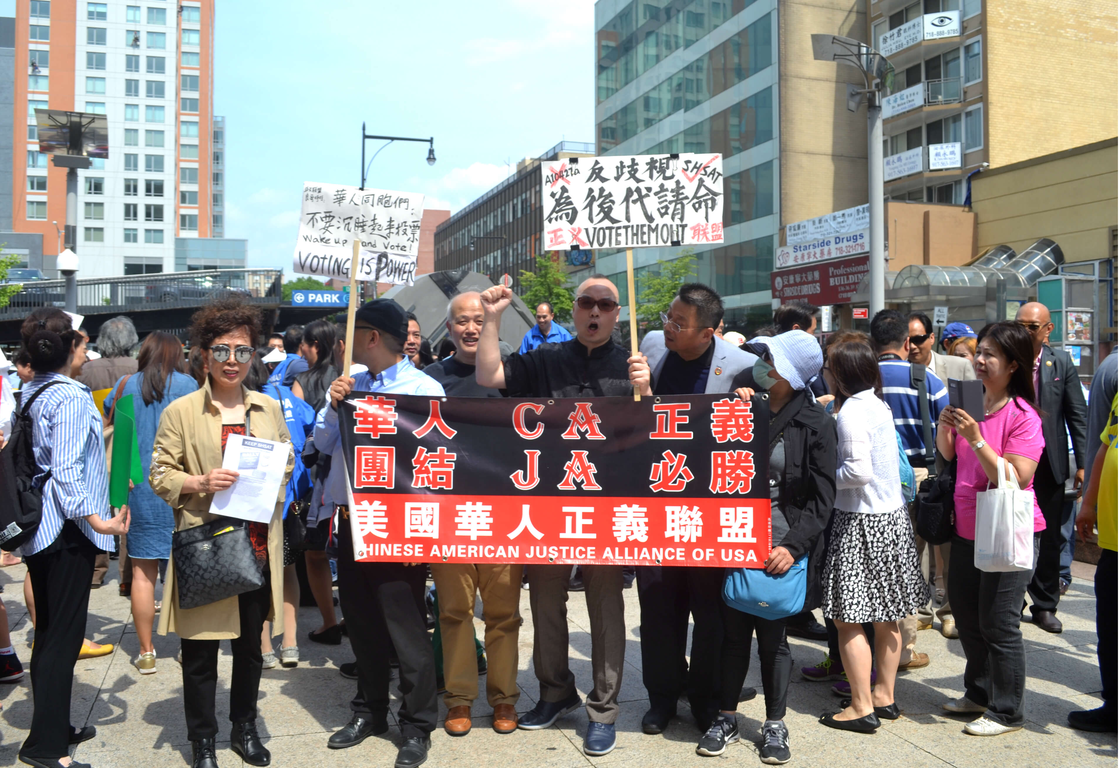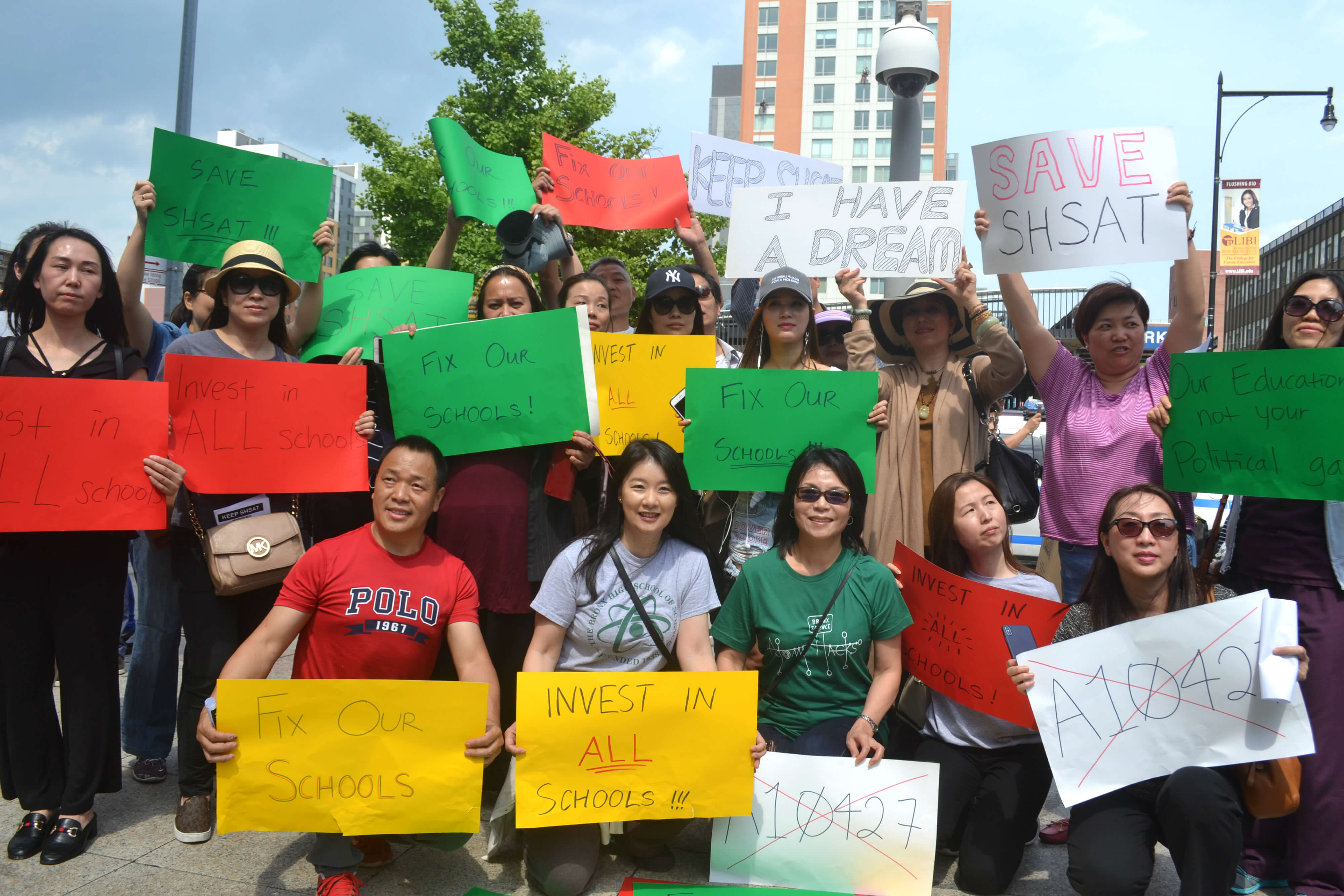 “Keep the test” was the rallying cry from the group gathered at Queens Crossing at the corner of 138th Street and 39th Avenue on June 8. The demonstration was organized in the wake of Mayor Bill de Blasio and Department of Education Schools Chancellor Richard Carranza’s June 3 announcement they would seek to eliminate the Specialized High School Admission Test (SHSAT).