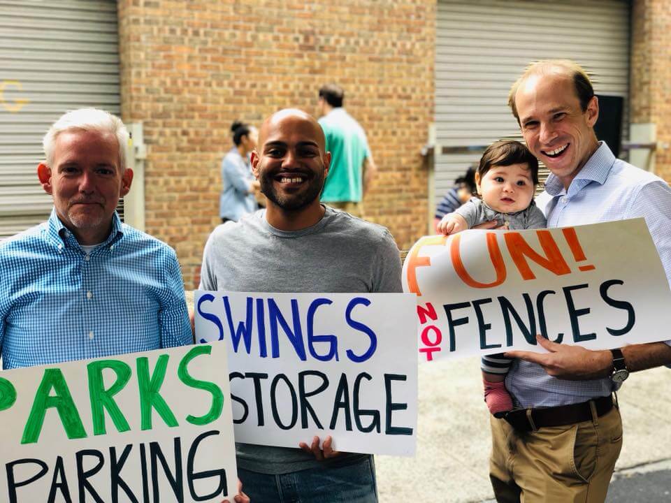 A flurry of signs waved in the air at the corner of Dutch Kills Street and Jackson Avenue on Sept. 22 as residents living near Court Square in Long Island City rallied in support of turning the land underneath the ramps of Queensboro Bridge into public space rather than developing it.