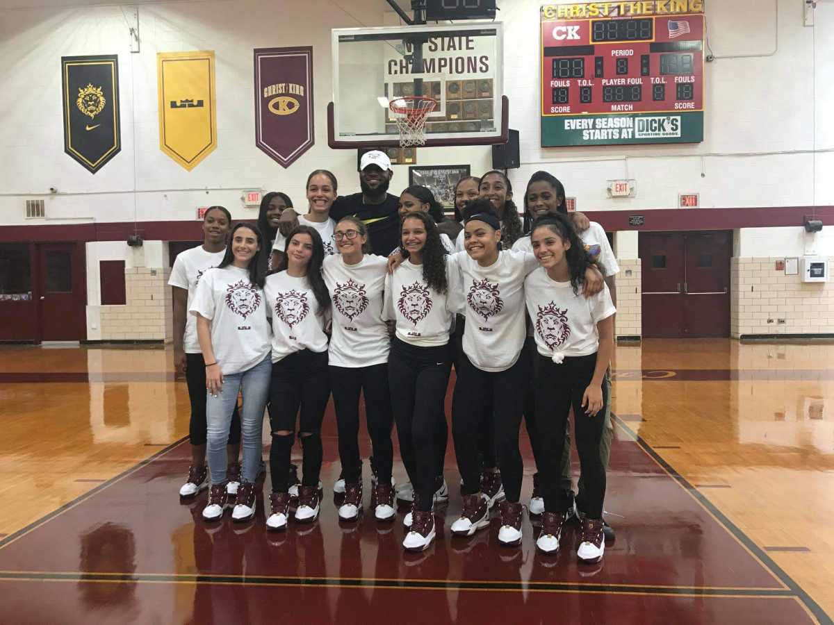 “Christ the King was excited to have LeBron James visit the school today sporting the Nike Zoom LeBron 3 Christ the King PE, which he gave a pair to each member of the Men’s and Women’s Varsity Basketball teams,” according to the CK Campus Facebook page. “He was also on hand for the unveiling of the new Men’s and Women’s Locker Rooms, which LeBron paid for and helped design. Thank you for generosity!!!”