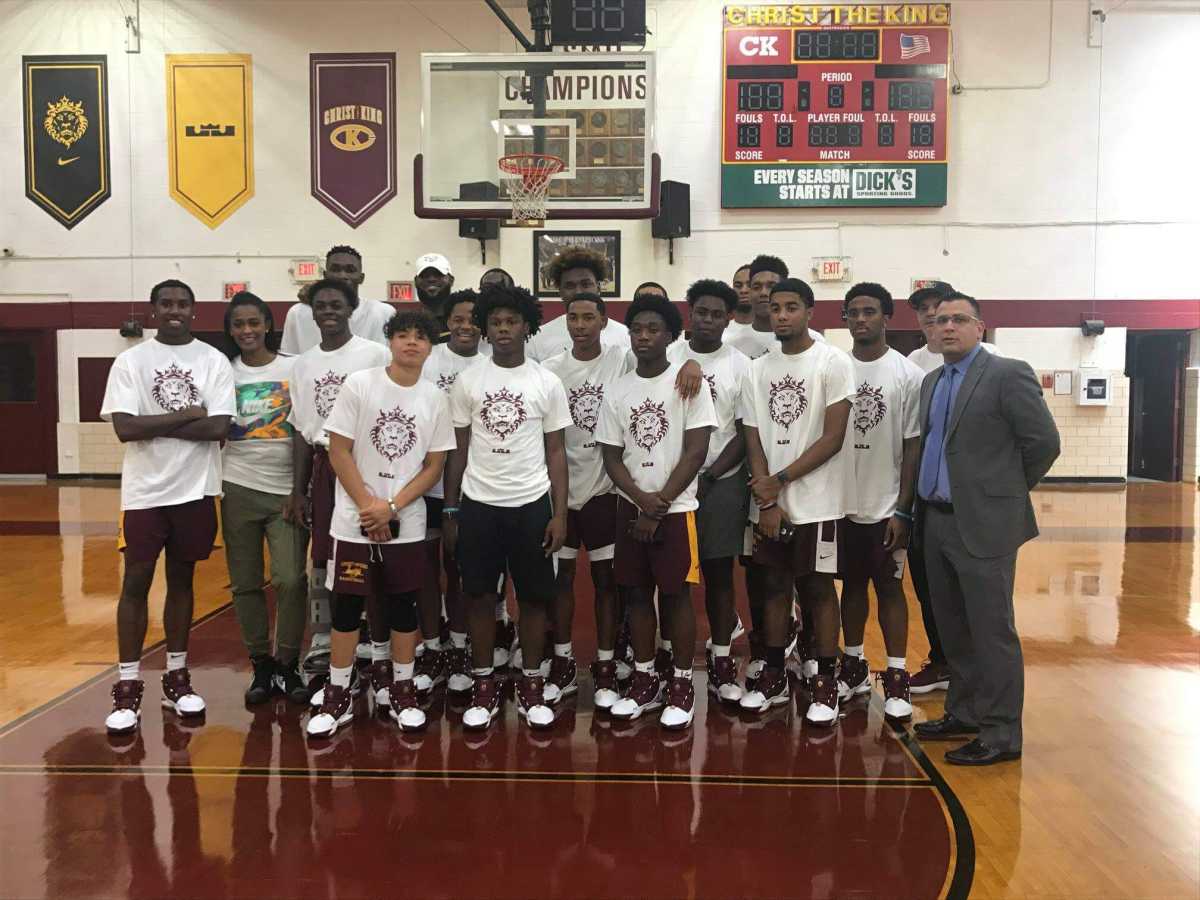 LeBron James surprised members of Christ the King’s men’s and women’s basketball programs with a Sept. 4 visit to the campus. According to Sports Illustrated, the NBA star presented the players with new gear — including pairs of Nike Zoom LeBron 3 PE sneakers — as well as a renovated locker room.
