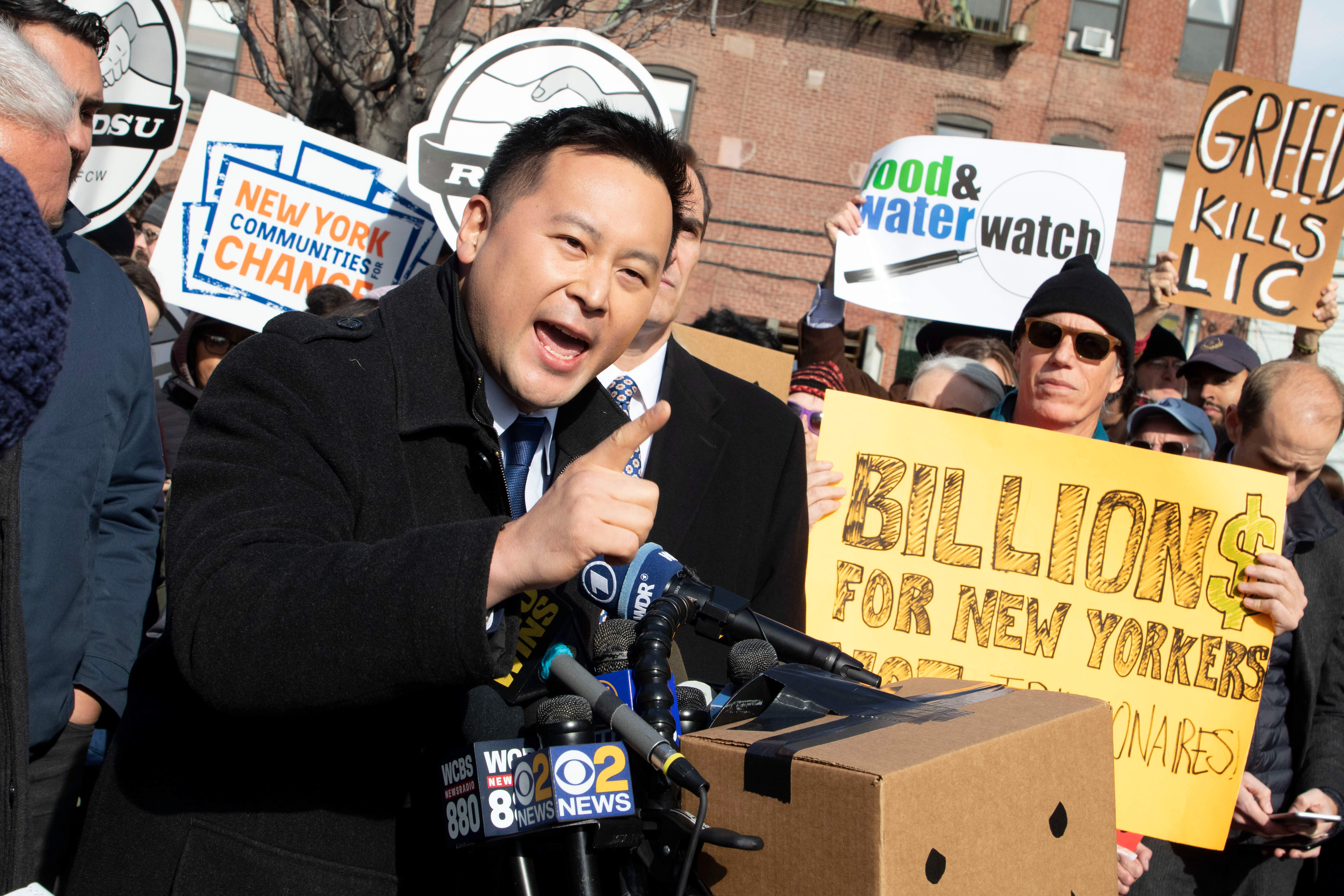 “Just this morning several residents contacted us to say that there is no heat in Queensbridge,” said Van Bramer to a sea of reporters. “But somehow, those who consider themselves progressive Democrats have seen fit to throw $3 billion dollars at the richest man in the world.”