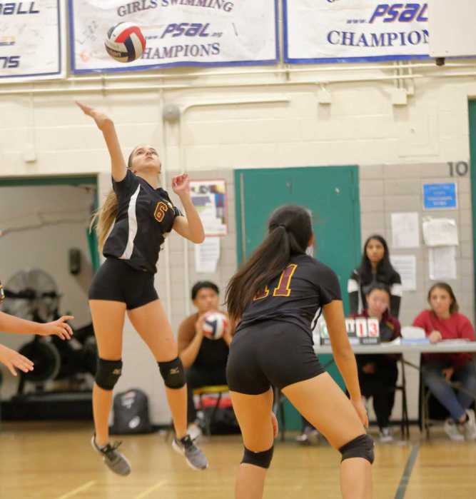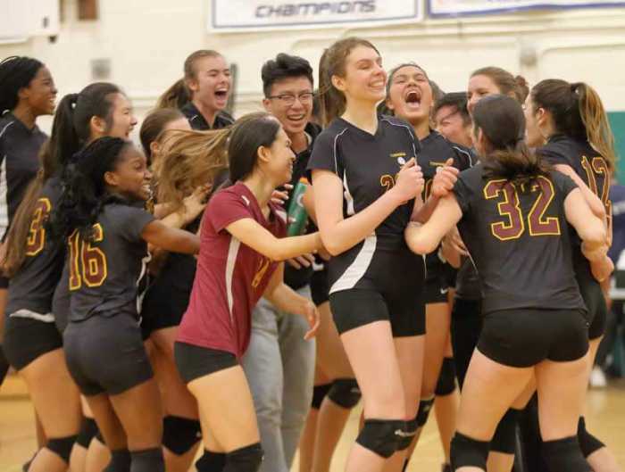 The Hawks tied the score at 23-23, but Bronx Science secured the next point to go up 24-23 lead. The Hawks tied the game at 24 and forged took a 25-24 lead behind the serves of Zoe Tylipakis, who delivered the game-winning serve and secured the 26-24 victory for Townsend Harris.