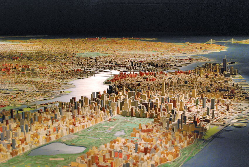 The museum houses within it a remarkable, football field-sized room featuring The Panorama, a to-scale model of the five boroughs built for the 1964 World’s Fair as a celebration of New York City. It took a team of 100 people working with model makers Raymond Lester & Associates over a three-year period to construct it. It’s an exact 1:1200th geographic model of the five boroughs in which one inch equals 100 feet. Most remarkable!