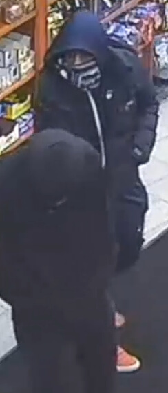 Police described the suspects as black men wearing either black, blue or dark-colored hooded jackets or sweatshirts. One of the bandits wore blue jeans and black-and-white sneakers; a second perpetrator wore black sweatpants and black sneakers; the third man wore dark-colored jeans and black sneakers; and the fourth individual wore a blue scarf on his face, blue pants and red or orange sneakers.