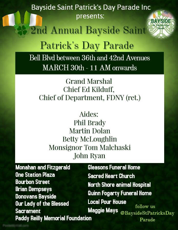 The second annual Bayside St. Patrick’s Day parade is on Saturday, March 30, at 11 a.m., led by parade organizer and neighborhood resident Kieran Mahoney. The Bayside resident served as the Queens County Aide for the annual St. Patrick’s Day Parade in Manhattan.
