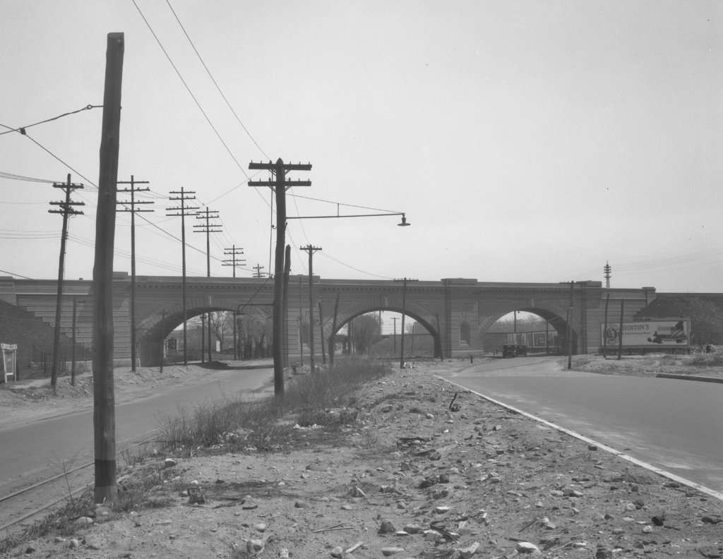 Anyone who drives frequently along Queens Boulevard in Woodside can probably recognize this spot where this May 1926 photo was taken. You’re looking eastbound at Queens Boulevard near the stone arches of the New York Connecting Railroad overpass. The bridge is still used today by freight trains within the CSX system. (Courtesy of NYC Municipal Archives, reprinted with permission)