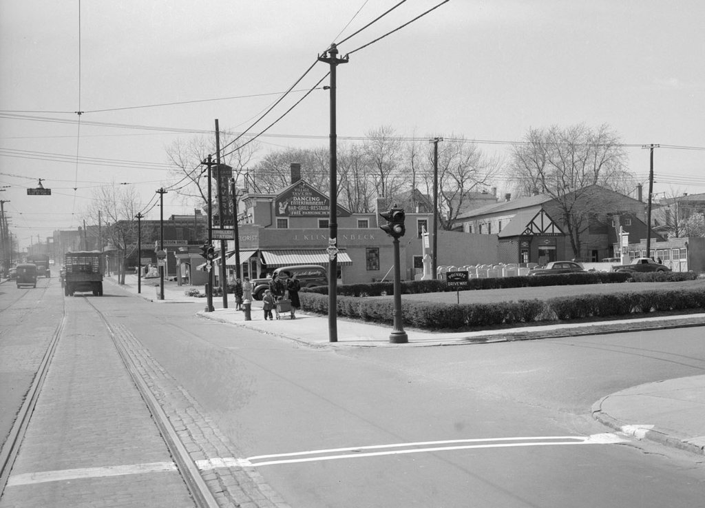 This 1940 photo shows the intersection of Metropolitan Avenue and 80th Street, looking westbound, in Middle Village, close to the main entrance to St. John Cemetery. (Courtesy NYC Municipal Archives, reprinted with permission)