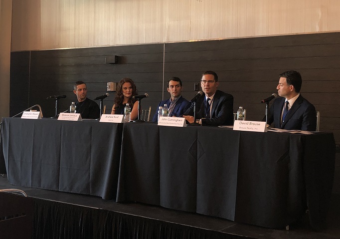 Panelists at LIC Partnership breakfast: (L-R) Christopher Mascari of Wirecutter; Melanie Lemieux of The Baroness Bar and The Huntress Bar; Andrew Kurd of Savanna, John Cunningham of Alexandria Real Estate, and David Brause of Brause Realty (Photo: QueensPost)