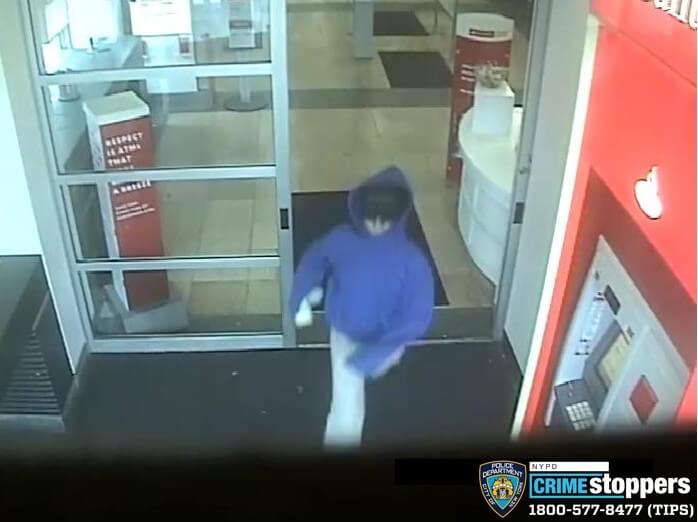 On May 31, the NYPD released surveillance camera images of the bandit. They described him as a white or Hispanic male standing at 5 feet, 10 inches or 5 feet, 11 inches tall and weighing 170 pounds. He was last seen wearing dark sunglasses, a black baseball cap, a blue hooded sweatshirt and tan pants.