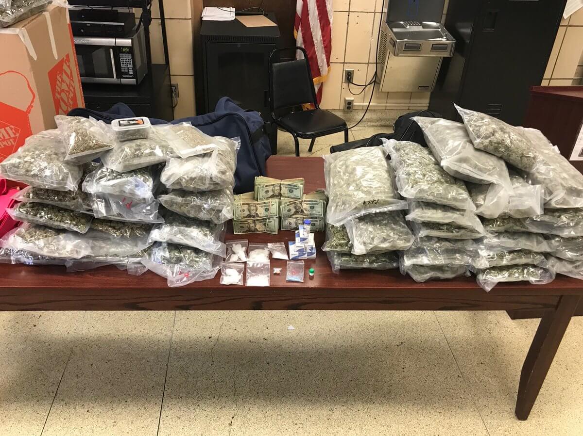 The criminal complaint noted that officers found 40 clear plastic vacuum-sealed bags inside of the living room and five similar bags of pot in the basement. In all, 43 pounds of marijuana, with a street value in excess of $100,000, were recovered during the raid.