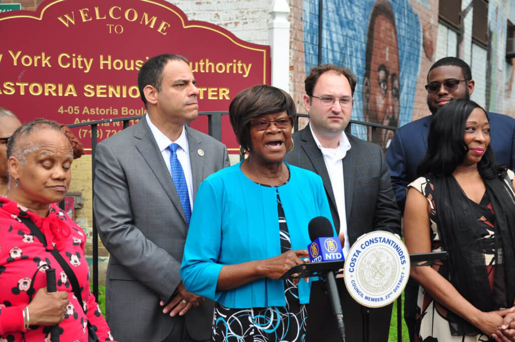 Each of the leaders thanked Claudia Coger, the 84-year-old president of the Astoria Houses Tenants Association, for her “relentless advocacy.” It was Coger that warned that the seniors, many of whom were approaching their “dying days” would never allow themselves to be bussed to the Queensbridge Houses, and away from their homes, even though many would forego their one hot meal a day.