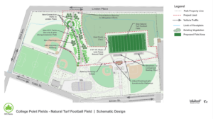 Delayed construction of College Point football field to begin in the fall, residents push for completion