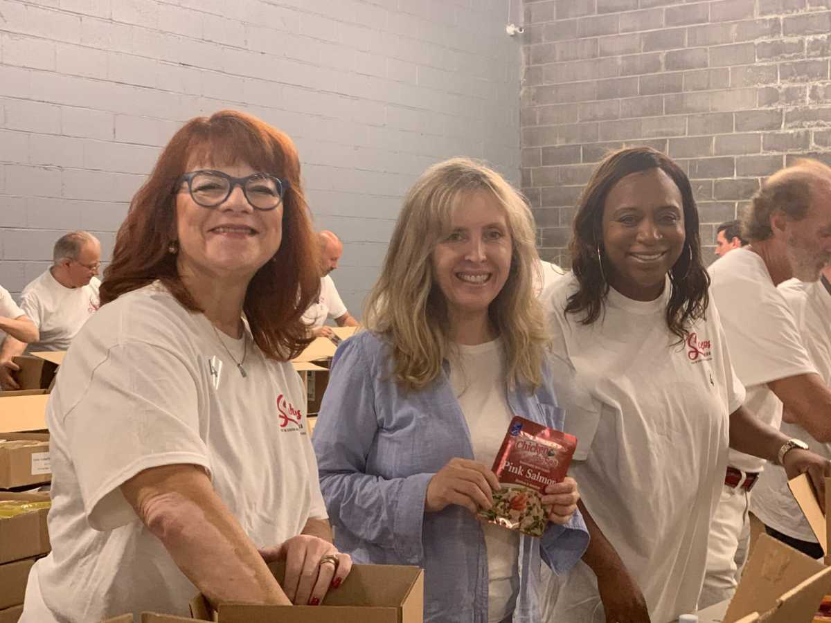 The teams lined up in assembly line fashion to to pack Emergency Food Packages, 6-pound, four-meal boxes of shelf-stable food delivered directly to clients. These packages are used in times of emergency when the program is unable to get meals to clients. All of Citymeal’s homebound meal recipients receive a box.