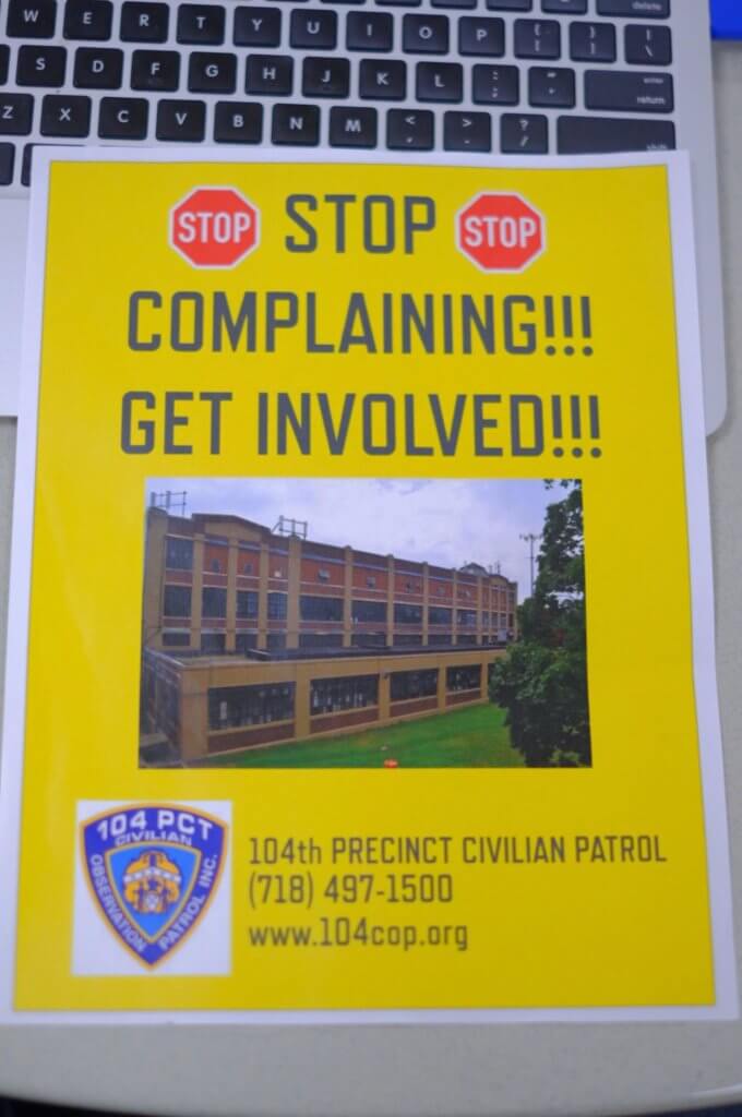 During that same Board 5 meeting, Holden called for the community to show up in force and advocated for residents to join the 104th Precinct Civilian Observation Patrol (104COP), implying that there will be an elevated level of danger to the community after the shelter becomes a reality.