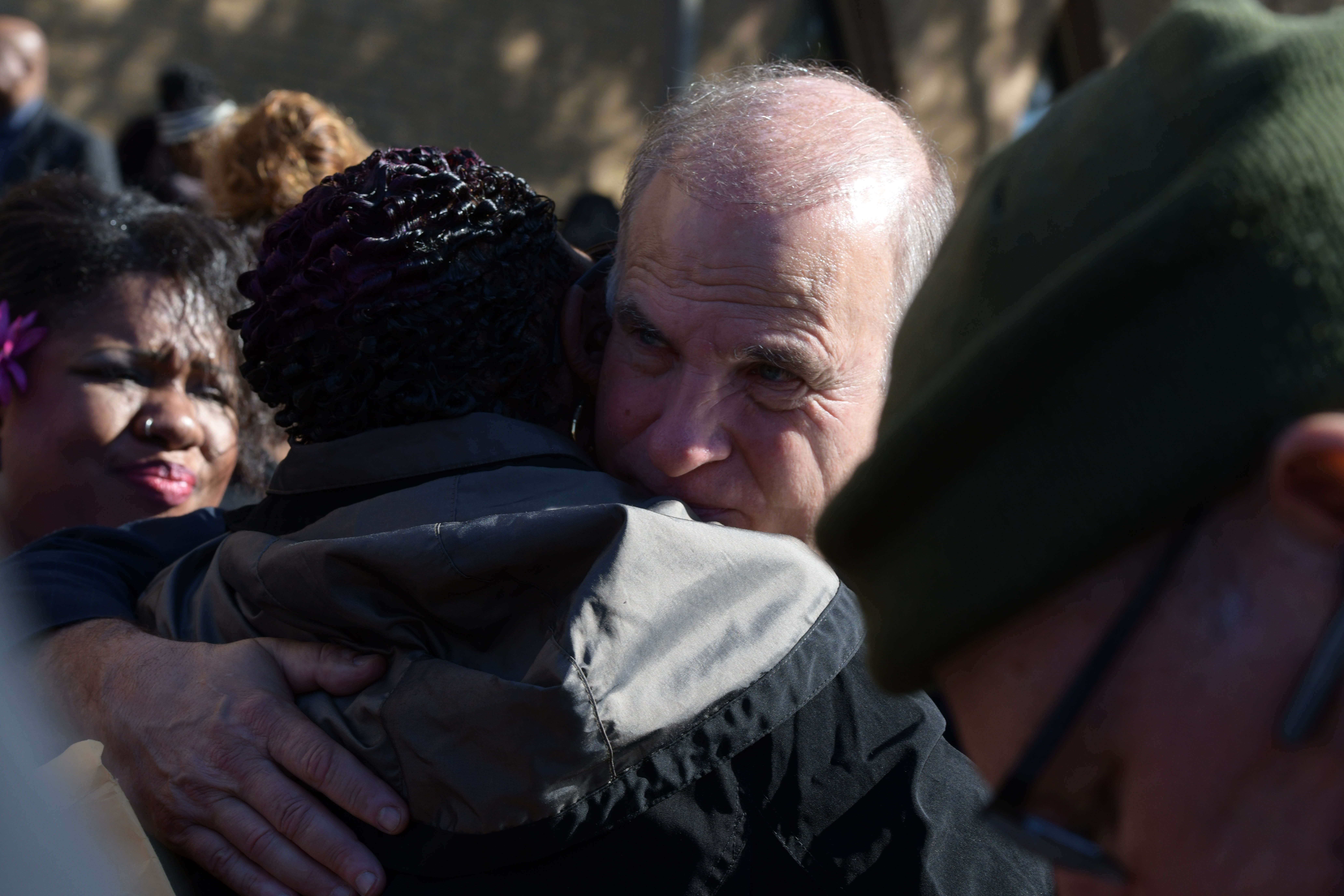 Katz entered the church, and got down on her knees in front of the parents. She clasped Aamir’s mother’s hands and spoke to her silently as mourners shuffled past paying their respects to the teen.