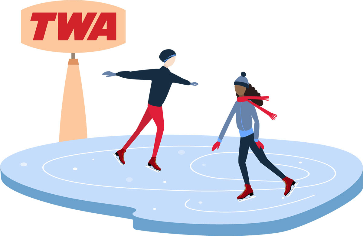If you have some time to kill before takeoff at JFK Airport, the TWA Hotel’s new ice rink can offer a fun way to wait and ease your nerves.