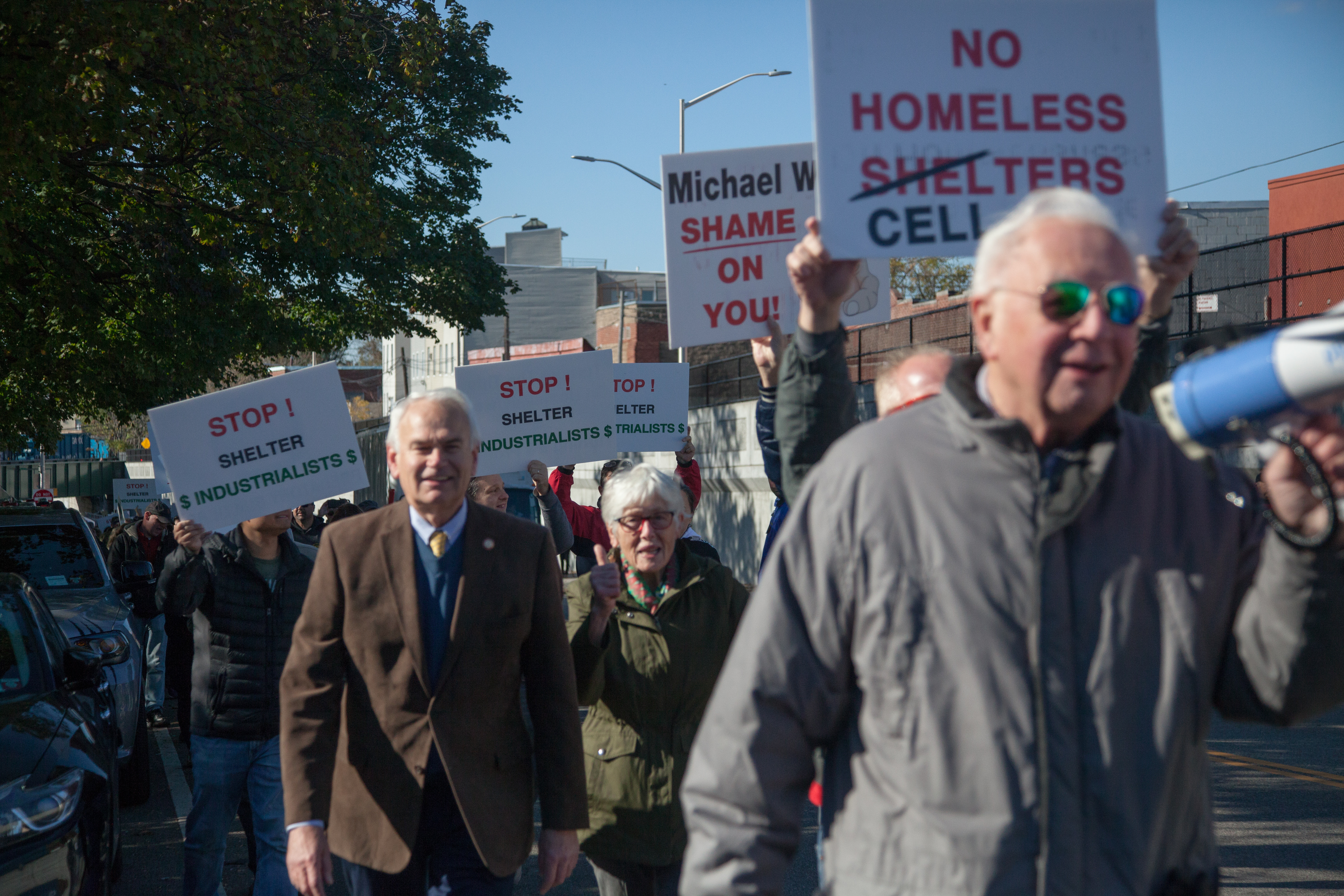 Mike Papa, a lead organizer for the rally, addressed the protestors’ source of fear, that the shelter would house “200 single males” who were “coming right out of Rikers Island” and would include “sexual offenders.”
