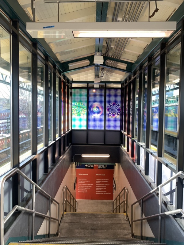 Since the station’s March closure, workers also strengthened the station’s column foundations, built four new mezzanine-to-platform staircases, rehabilitated platforms and installed new LED lighting and canopy roofs. Artists also beautified that station with new glass art both inside the mezzanine and on staircases.