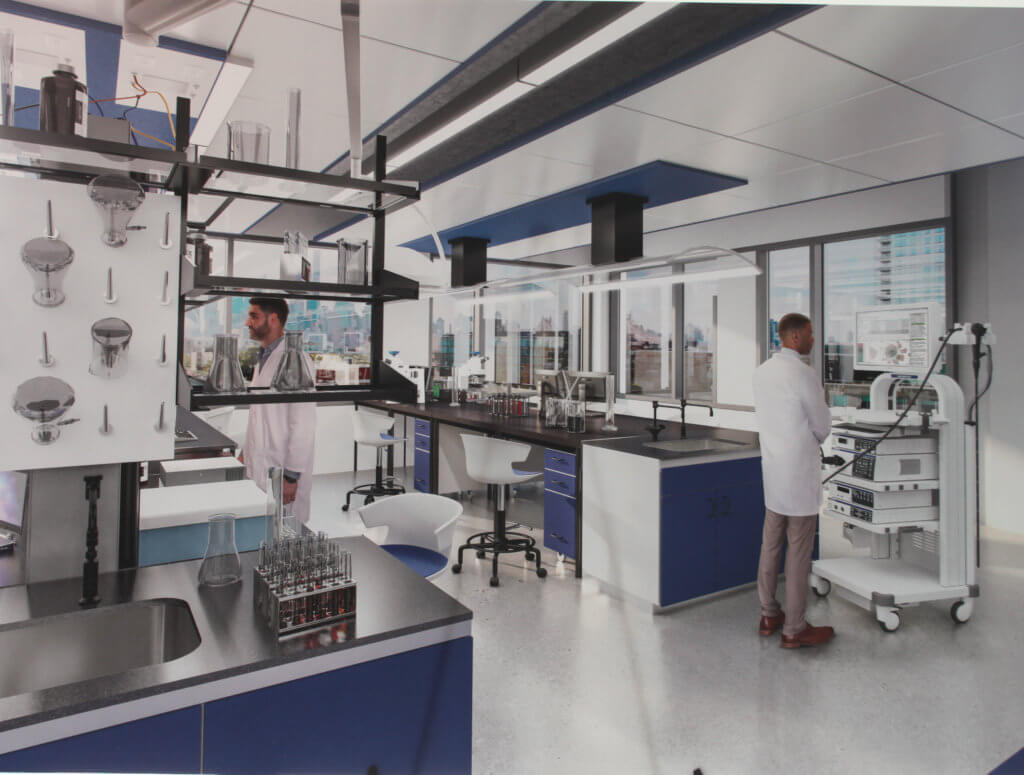 Innolabs will be a six-floor building that will have features that attract innovative life-sciences companies, including state-of-the-art labs and office space, a cafe, flexible event space, bike storage and locker rooms, and access to mass transit with a short distance to and from Manhattan.