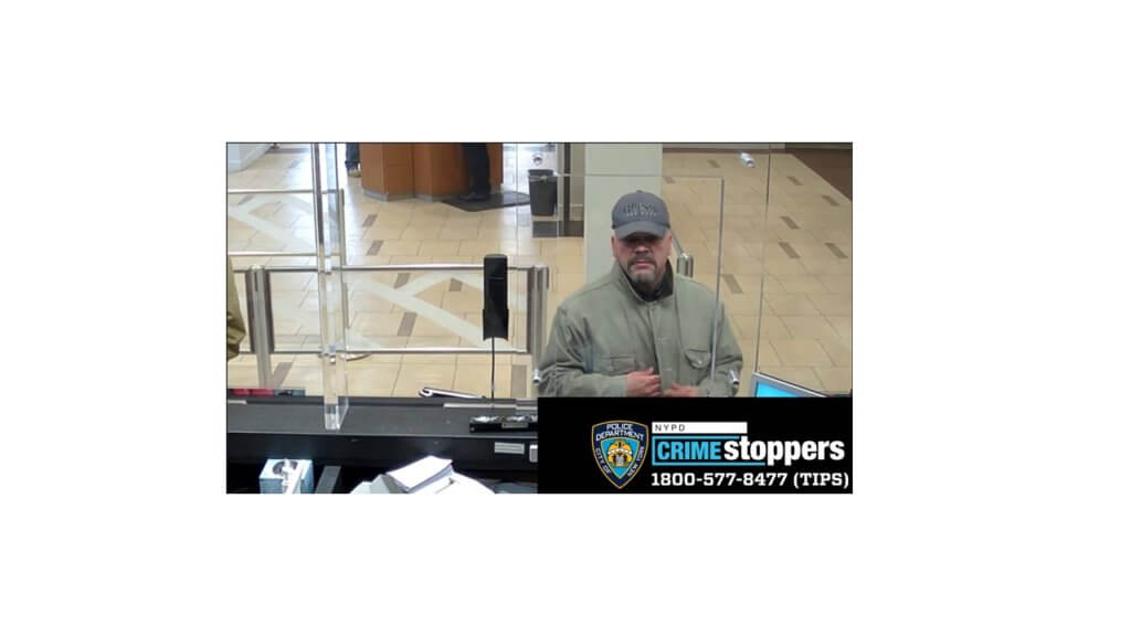 On Monday, Jan. 13, around 9:30 a.m., the man approached a teller’s window at Popular Bank at 15 Graham Ave., Williamsburg, Brooklyn. He then passed the teller a note demanding money, according to the NYPD. The teller complied and the man made off with $2,000.