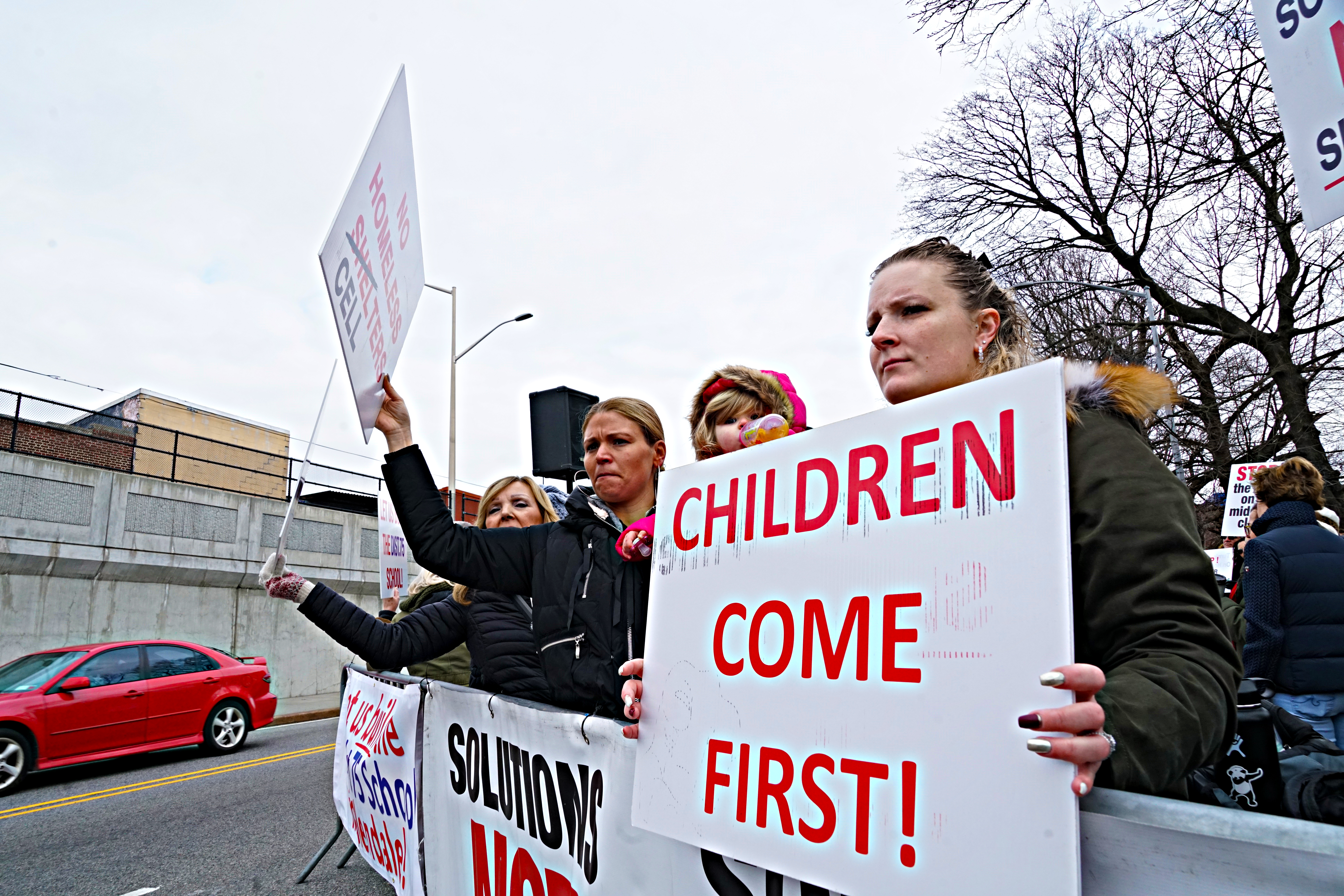 Torey Schnupp, an opponent of the Rockaway shelter came to the rally to encourage both communities to unite over their fight against the city.