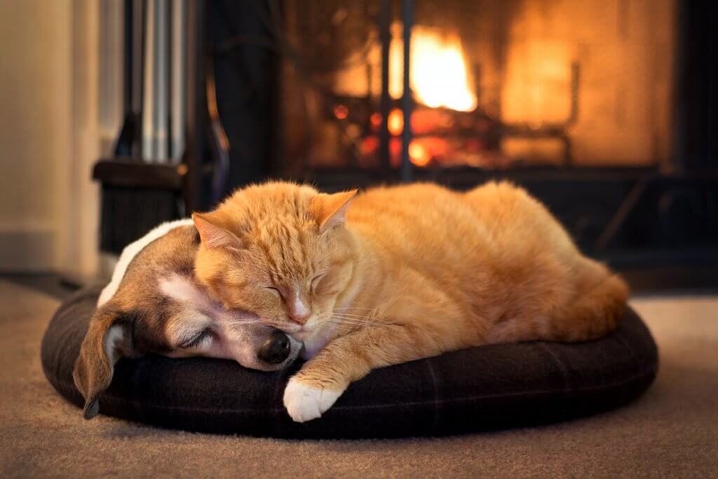 Fireplaces pose an additional indoor danger to animals. Screens are a must to avoid flying sparks and flames. Although it could be tempting for them to curl up in front of the fire on a cold night, pets need to be kept a safe distance from fireplaces and portable heaters to avoid overheating.