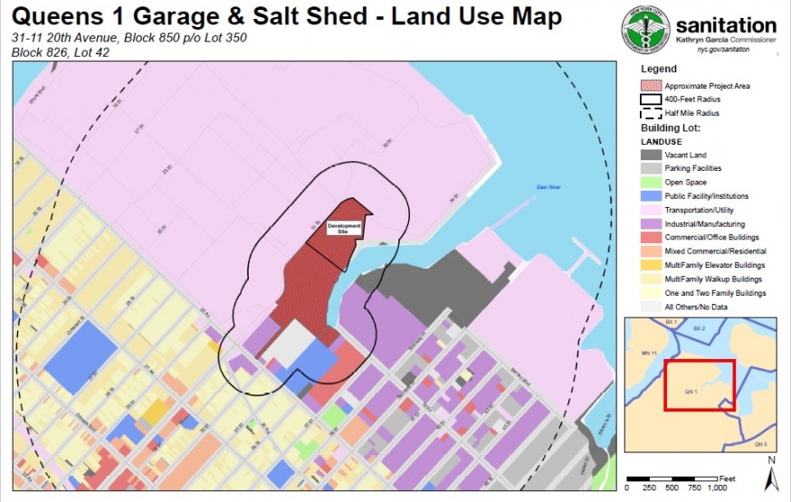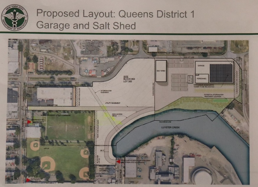 The plan involves the construction of a new garage and salt shed on a 9.8 acre site on 20th Avenue that will enable DSNY to continue serving north west Queens. The salt shed will replace the salt facility on the waterfront at 43rd Avenue and Vernon Boulevard.