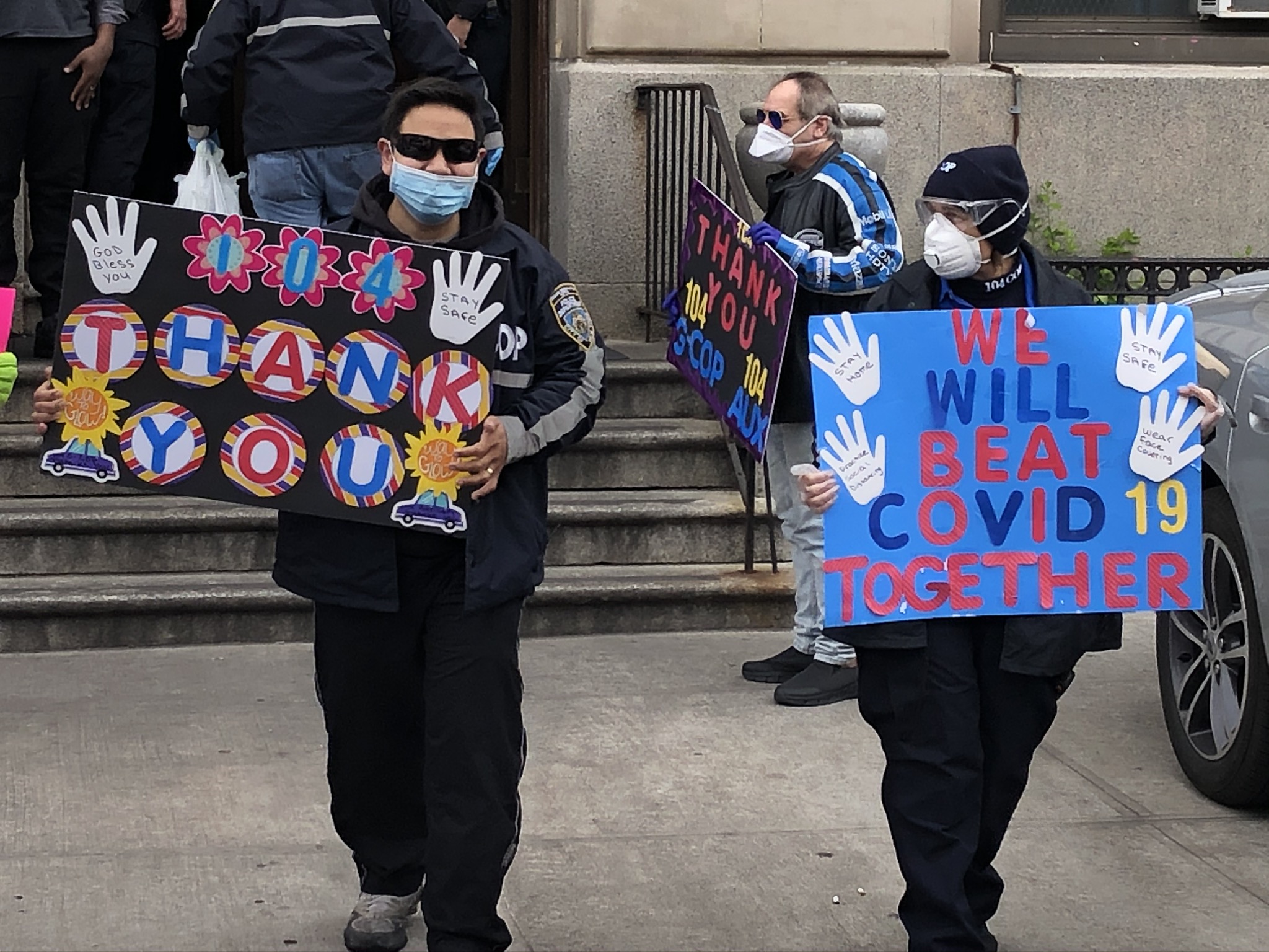 The 104COP, commonly known as the volunteer group The Glendale Civilian Observation Patrol, thanked all the medical professionals at Wyckoff Heights for their continuous hard work and dedication during the COVID-19 health crisis. They then delivered more food and refreshments to officers at the 104th Precinct located on Catalpa Ave.
