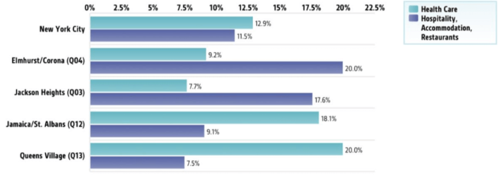 The study took a look at which areas in New York City had the highest risk because of where they work. According to the study, about one in five residents in Jackson Heights, Elmhurst and Corona work in hospitality, accommodations and restaurants, while one in five workers in Jamaica, St. Albans and Queens Village work in health care — making all of these residents more vulnerable to catch COVID-19.