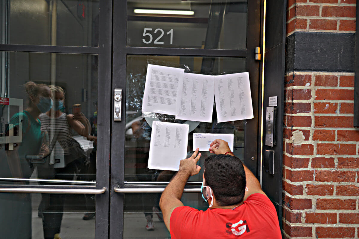 When the rally concluded, Karolidis tapped a petition and letters addressed to Target to their offices’ front door, saying they will have to read it that way.