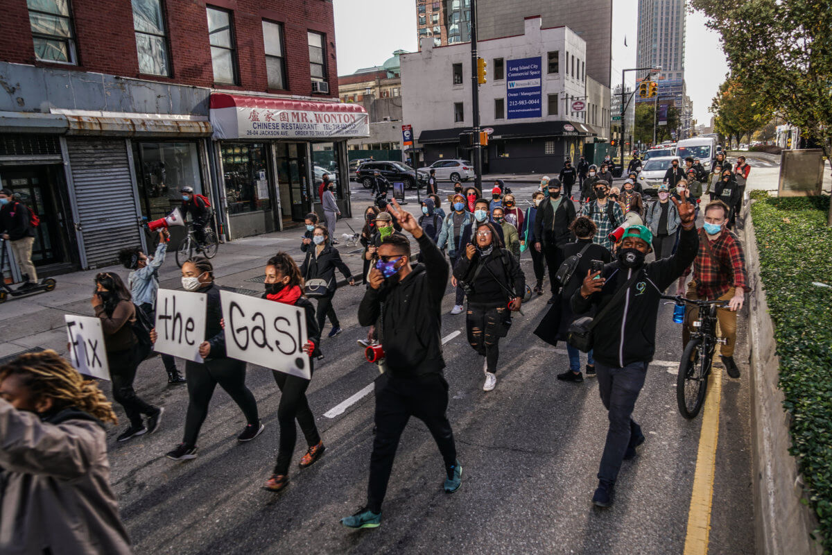 Protesters chanted “What do we want? Gas! When do we want it? Now! If we don’t get it, shut it down,” while marching on Jackson Avenue toward Steinway Street.