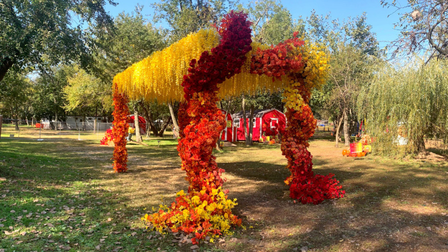 All of the flowers used in the production are made from silk and their colors represent the fall season, according to Laila Ahmed, co-owner of The Floral Escape.