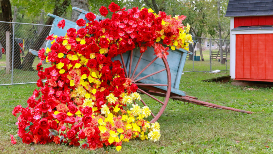 Other floral attractions include a bright red rose barnyard, a “cornfession chair” engulfed in blooms and a selfie station arced in the colors of the rainbow.