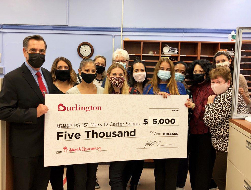 Teachers at P.S. 151 were awarded $5,000 from Burlington in partnership with nonprofit AdoptAClassroom.org on Oct. 14, in celebration of the new retail store set to open in Long Island City.