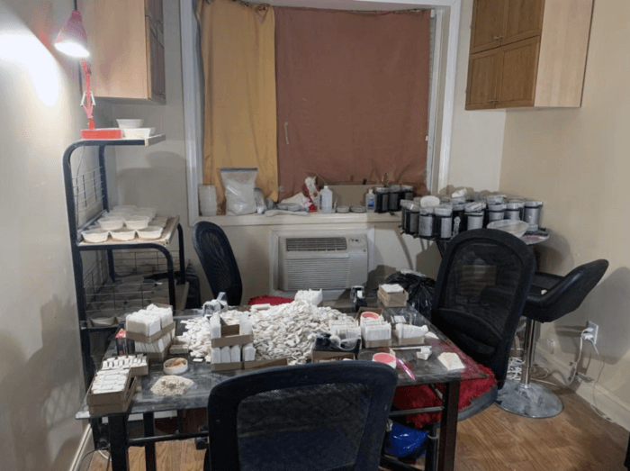 The Ridgewood home was found to have around 39 kilograms of suspected heroin, 1,000 pills of fentanyl and $200,000 in cash inside when a law enforcement team comprised of DEA special agents, NYPD detectives and New York State Police investigators made their way inside on Monday, Feb. 8. The drugs inside the apartment are believed to be worth around $12 million, according to prosecutors.