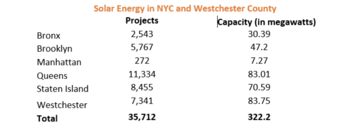 Overall, Queens holds the title for the most solar panels in all five boroughs, with a total of 11,334. Of all the boroughs of New York City and Westchester County, a total of 35,712 solar panels were completed by the end of 2020. This has the capacity to produce 322.2 megawatts across the city and Westchester.