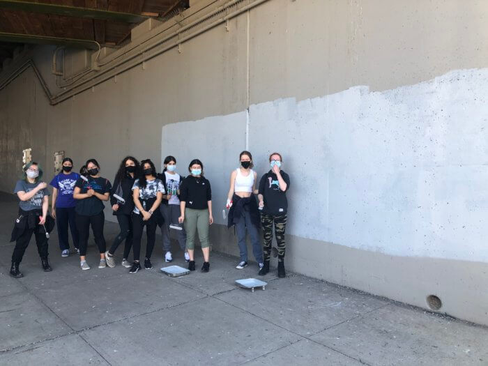 Hearing about the work Maspeth High School is doing, members of the community have volunteered to help in any form they can. Through an event with the NYPD’s 104th Precinct on the Long Island Expressway service road and Grand Avenue, M.M.A.D. was able to cover 10 pieces of graffiti.