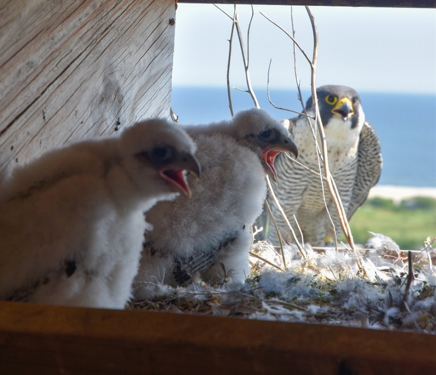 The birds live in a nesting box with their mother atop the Marine Parkway-Gil Hodges Memorial Bridge. Credit: MTA/Kevin Call