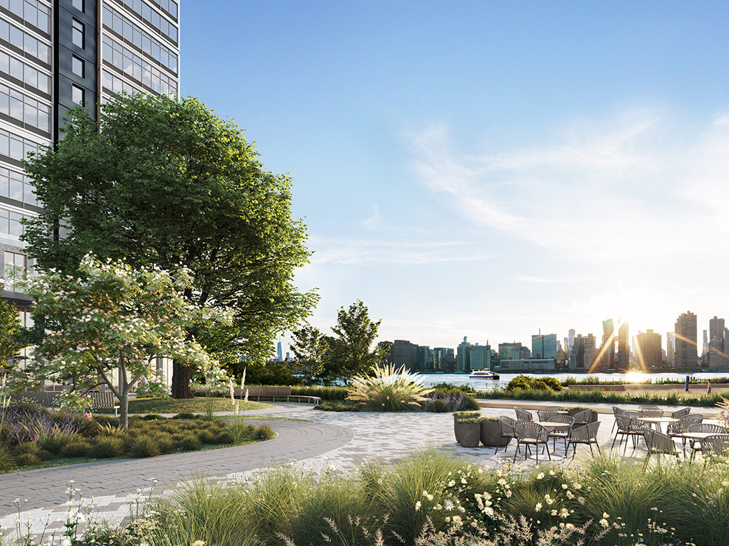 Amenities at 52-03 Center Blvd. include bike storage, a clubroom, lounge, co-working space, fitness center with a yoga studio, a playroom, landscaped outdoor areas with grills and a sundeck.