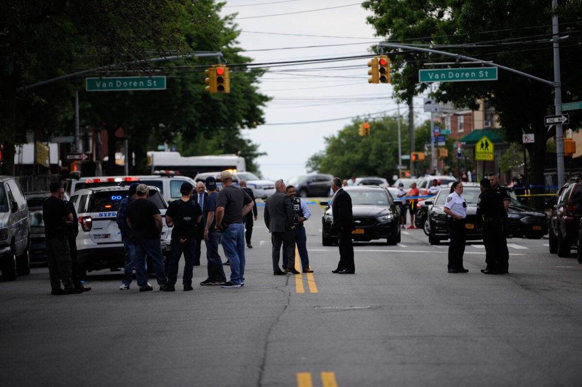 Officers from the 110th Precinct, in responding to a 911 call about the shooting, found the wounded victim unconscious and unresponsive on the sidewalk.