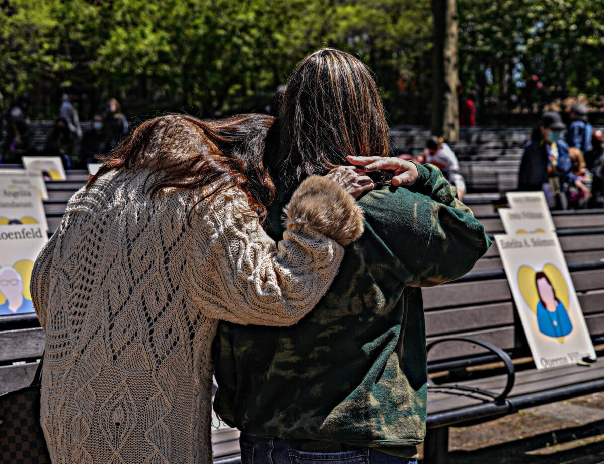 The adorned the empty benches of the Forest Park Bandshell as a visual representation of the tremendous loss endured by the Queens community.